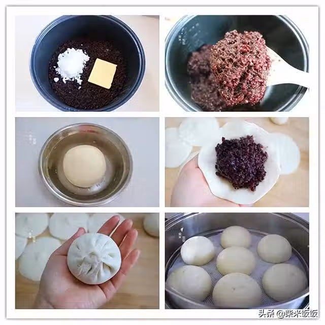 4,將麵糰切成小劑子,再擀成中間稍厚,邊緣稍薄的包子皮。然後包入冷涼的紫米餡。