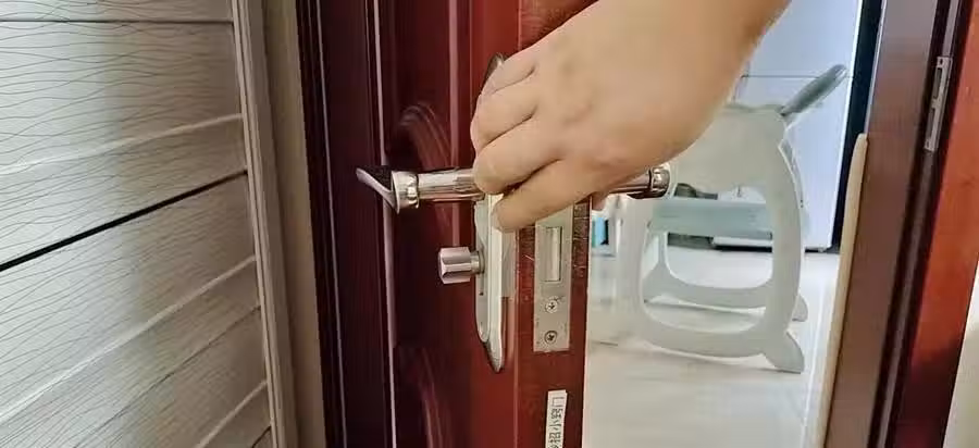 我們把房門鎖芯的位置粘貼好了之後,現在我們來試一下,這樣即使小孩想反鎖的時候,擰也擰不動,裡面的鎖芯也就出不來,不能反鎖了。如果家裡的小孩長大了,那麼我們也可以在自己的房間裡面放上備用鑰匙,防止小孩鎖門,發生一些危險的事情,也是非常簡單的一個方法。