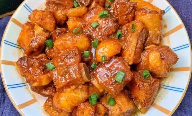 (6)轉小火燉至食材熟透,大火收汁關火出鍋,撒上少許蔥花點綴即可,做法簡單廚房小白也能輕鬆駕馭,老少皆宜!