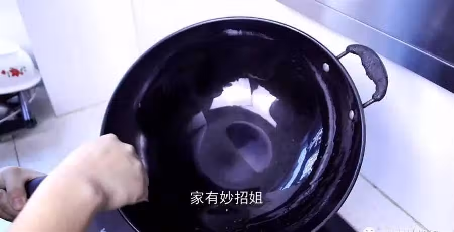 下面再跟大家分享將鐵鍋變成不粘鍋的方法。我們先開火,將鍋中的水完全燒干,然後改小火,在鍋中倒入一點食用油,就是平時我們用來炒菜的油就可以。接著我們把鍋輕輕的晃動一下,使鍋的四周都均勻的粘上食用油,繼續用小火慢慢的燒,當鍋周邊的油都流到鍋中間的時候,我們再次將鍋晃動一次,使四周都沾滿油。