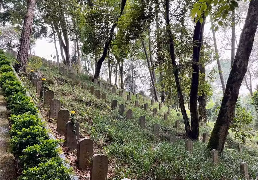 走進墓園之後,首先看見的是一口巨大的鐘,這也在提醒著我們要警鐘長鳴,時刻不忘日本帝國主義侵華的罪證。再往前走有一面墻,上面書寫著遠征軍戰士的名字,滿滿一墻規模很大,先輩們應該永遠被銘記。