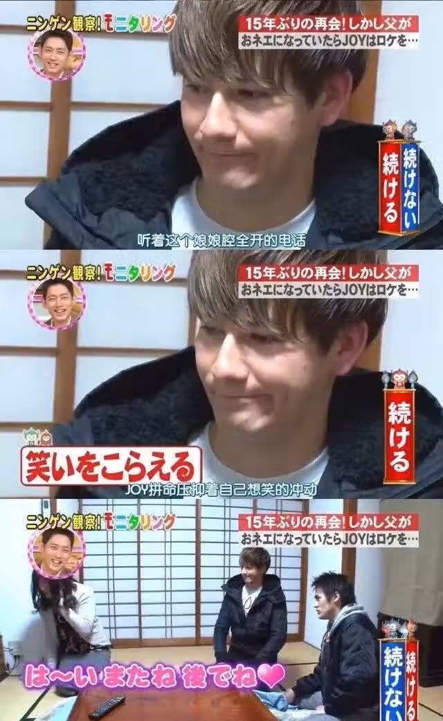 為了完成拍攝工作,JOY決定先與父親單獨交談,可誰知兩人間的氣氛卻越來越曖昧。不幸的是,健太撞見了這一幕,再次引發了爭吵。JOY感到不知所措,下一秒父親再次爆梗:「他說他喜歡我」,健太瞬間爆炸,場面亂作一團,這種情況就像是一個三角戀。