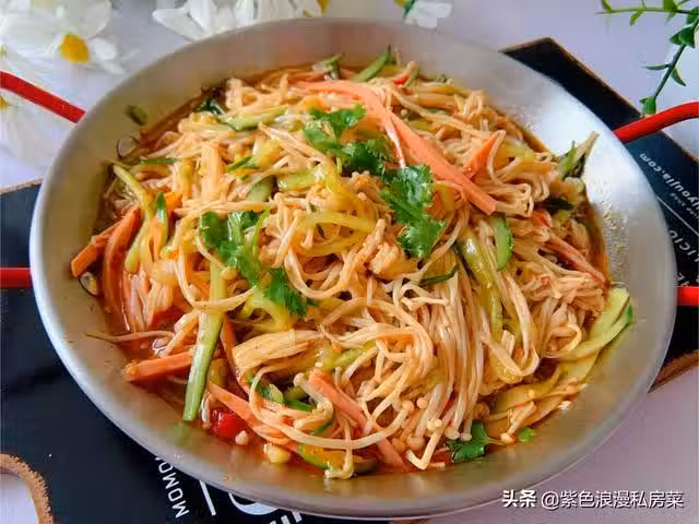 大家好!我是紫色浪漫,又到了分享美食的時間。我和家人都很喜歡吃菌菇,尤其是金針菇,不管是用來做湯,還是用蒜蓉蒸著吃,還是涮火鍋,都極受家人的喜歡,不過夏天天太熱,不想吃熱乎乎的,就想吃個涼拌的,既營養美味,還特酸辣開胃!