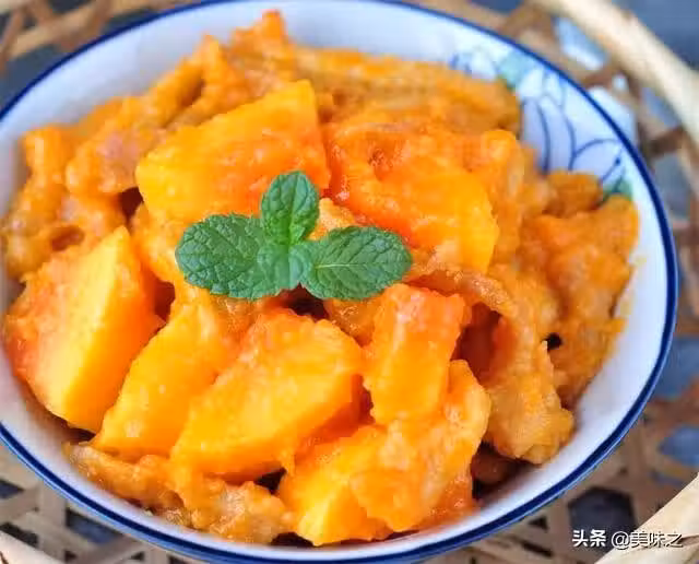 5、鍋里留少許底油,倒入木瓜泥,加入糖,小火加熱至糖融化。