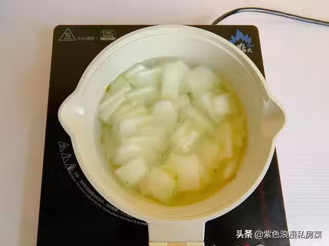 6.冬瓜煮軟煮熟,放豆腐煮開,放適量的鹽,再放蝦仁。