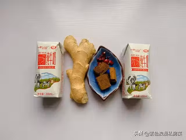 1.準備食材,紅糖薑汁撞奶能不能做成功,需要選擇蛋白質含量高的好牛奶,我用的是美麗健純牛奶。