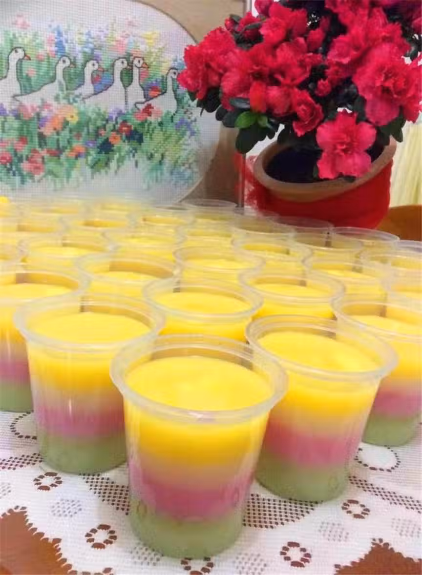 1)將奇異果乳酸和材料放進鍋里,拌均煮滾,待稍冷倒入杯子底層,加入一片奇異果。 。 。待凝固。