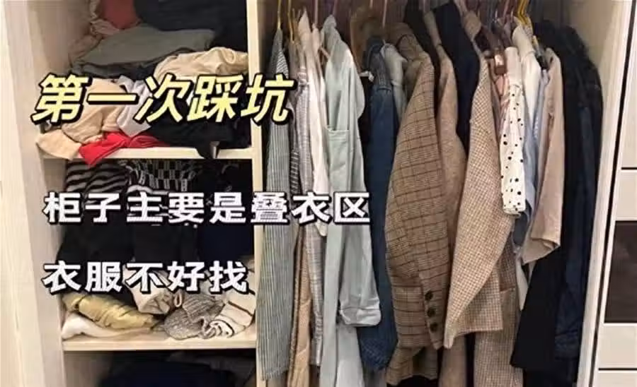 最後,衣櫃里做了太多疊衣區,也是我比較後悔的地方,看似網上很多整整齊齊的擺拍都很好看,但真正用起來完全不是那麼回事兒,每次有太多衣服要反復疊,別提多麻煩了。