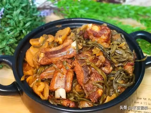 9.到時間後,開大火收汁,剩少許湯汁時,關火,一鍋香味四溢的排骨燉乾菜就做好了。