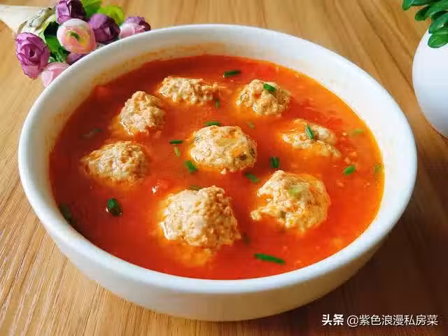 將肉末搓成一個個丸子,放入鍋中,丸子浮起來就熟了,放胡椒粉雞精,撒上香蔥就可以出鍋啦!