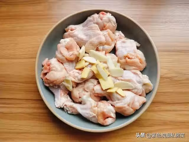 1.小雞腿清洗乾淨,用刀劃幾刀,方便入味,放入大蒜,生薑片。