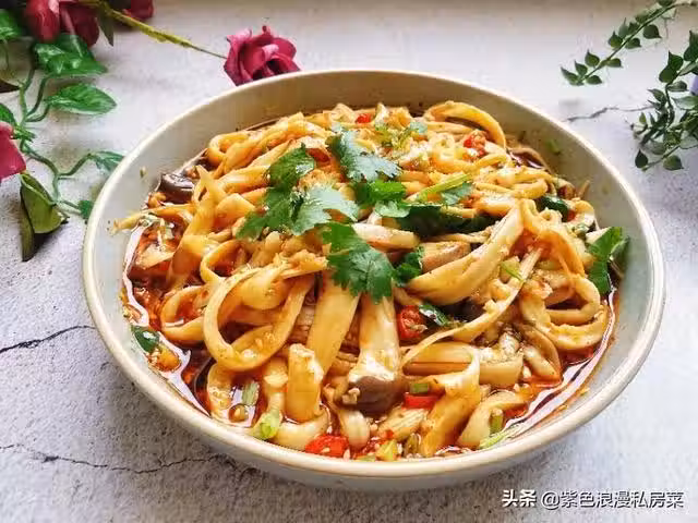 3.杏鮑菇蒸熟晾涼,撕成長條,倒入涼拌汁拌勻即可,酸辣開胃特別有嚼勁。