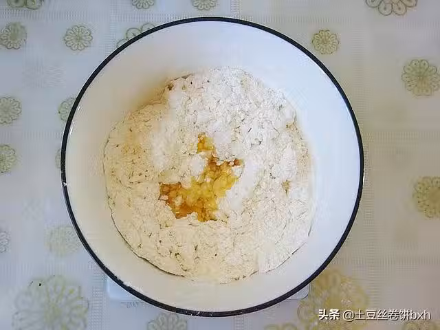 3、然後再用溫水融化酵母后來和面,麵糰比較軟,我是戴上一次性手套塗點油操作的,簡單揣一揣就行。蓋好,發酵!