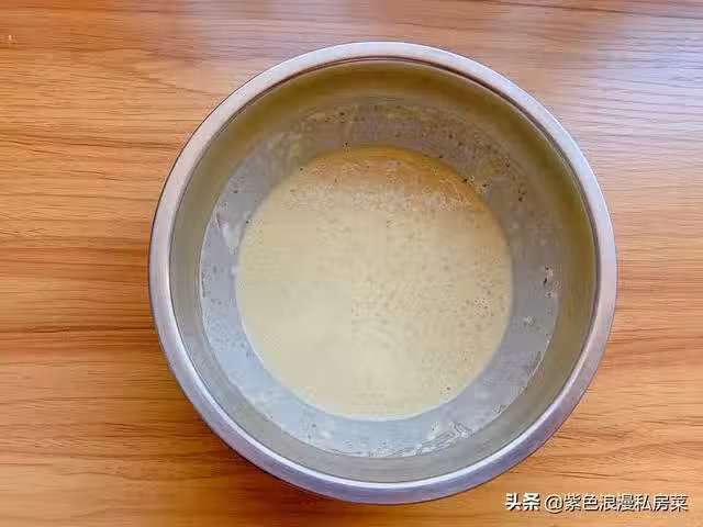 4.放適量的清水,把麵糊攪拌成無顆粒狀,攪拌好的麵糊跟我們喝的酸奶一樣濃稠度即可。