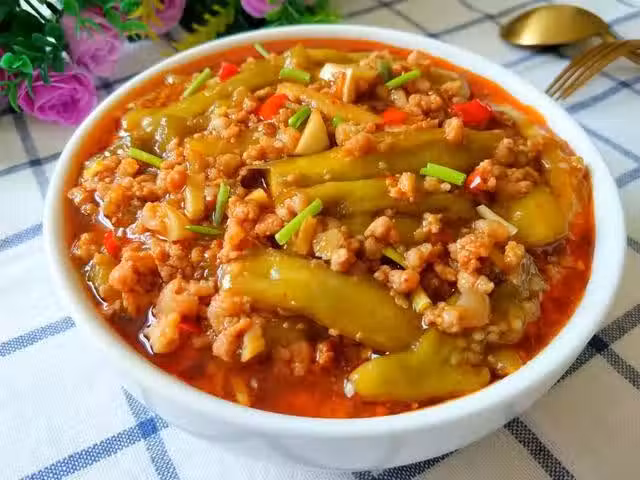 【魚香茄子的食材】:茄子500g,肉沫150g,小米椒三個,生薑一塊,大蒜三瓣,香蔥適量。