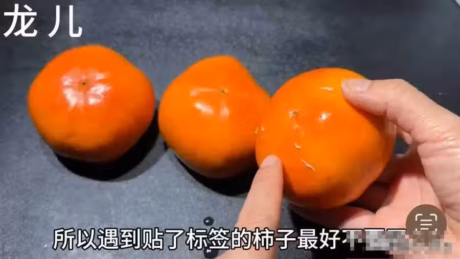 有時候我們把柿子皮都已經摳爛了,標簽都不能被完整的取下來,我們再試一下,用溫水將標簽打濕,接著用手指搓一搓,就算是這樣,上面的標簽依然搓不下來,如果是軟柿子的話,用手這樣搓,柿子早就被搓壞了,甚至於我用指甲去摳都摳不下來,且柿子被我們這樣一頓操作過後看上去就已經沒有食慾了,所以遇到貼了標簽的柿子最好不要買。