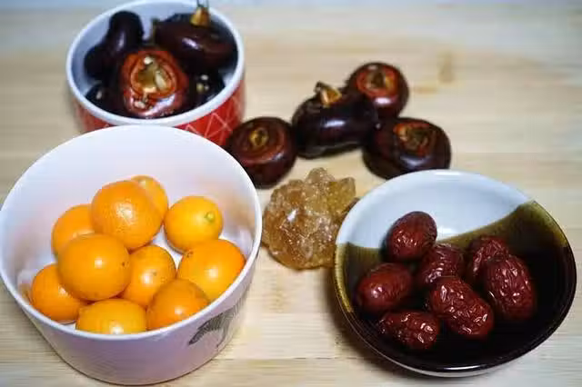 2、金桔洗凈劃十字刀,用小刀挑出裡面的籽,紅棗洗凈在表面劃幾刀便於入味。