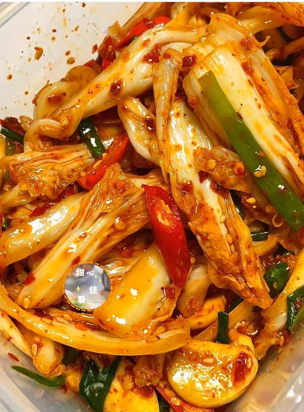 🌰材料:娃娃菜,小米辣,蔥,蒜,辣椒粉,陳醋,生抽,蚝油,糖,鹽