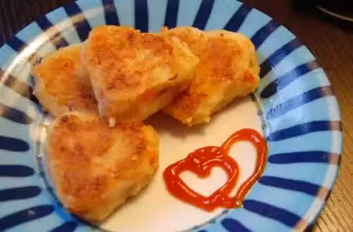 3. 土豆泥做成大小均勻的餅,放入加了油的平底鍋,小火煎至兩面金黃即可。