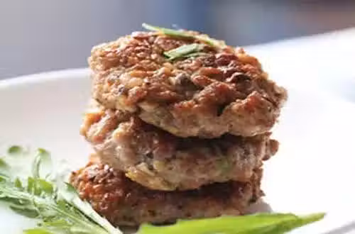 3. 鍋中放入油燒熱,將肉餅放入,一面煎黃後翻面,反覆翻幾次至肉餅成熟即可。