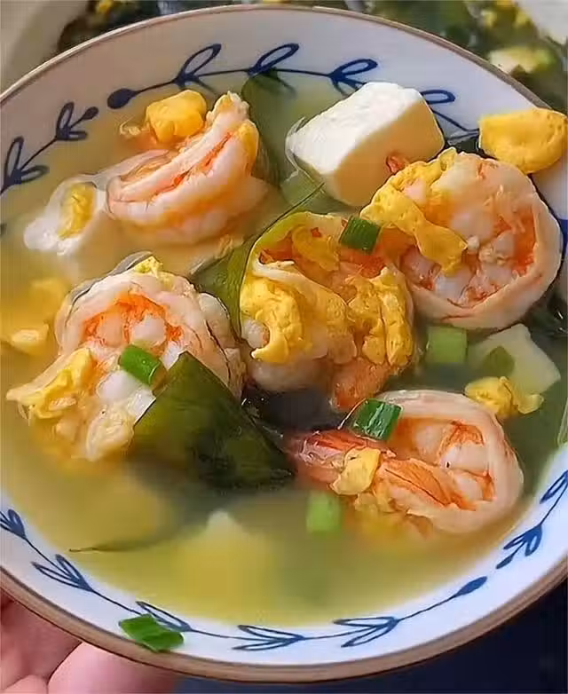 食材準備:蝦仁,料酒,胡椒粉,裙帶菜,雞蛋,嫩豆腐,鹽等。