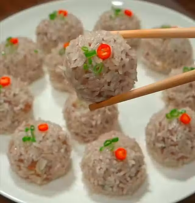 步驟三:取一小團肉,團成丸子,均勻地裹上一層糯米,上鍋蒸十五分鐘,即可出鍋。肉香十足,糯米軟糯,孩子很喜歡吃。