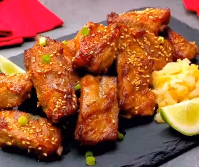 食材準備:排骨,蚝油,蒜末,白糖,薑片,鹽,料酒,白鬍椒粉,生抽,老抽,食用油,芝麻,蔥花等。