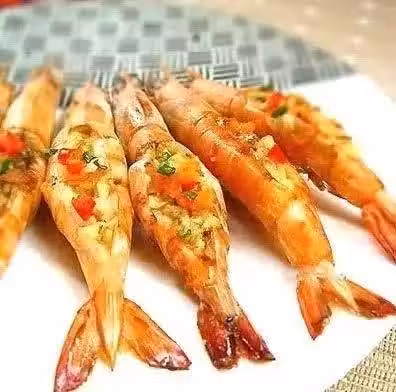 食材:蝦一斤、蒜蓉少許、鹽少許、味精少許