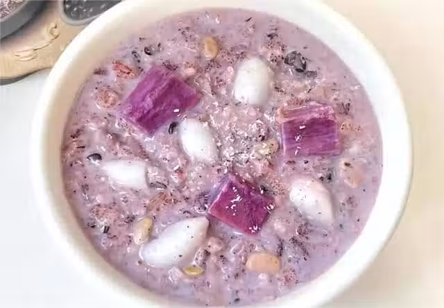 紫薯含有豐富的花青素,百合有寧心安神的作用。這樣一款紫薯百合燕麥粥,特別適合乾燥的秋季。