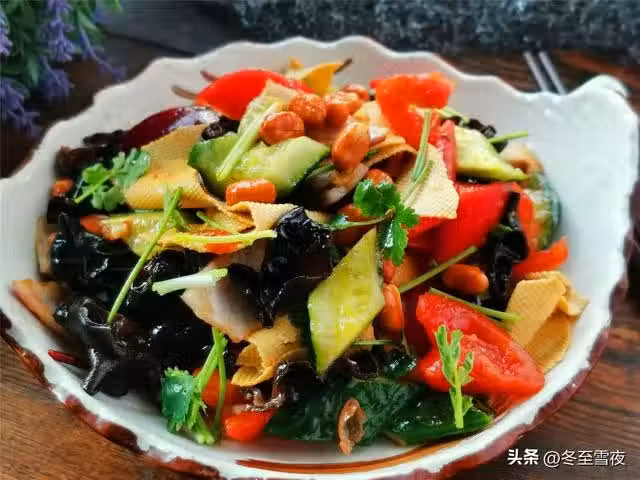 【手撕大拌菜】所需材料:黃瓜1根、西紅柿1個、洋蔥半個、干豆腐2張、木耳1把、香菜1棵、油鹽適量、香油1湯匙、干辣椒5-6個、白糖2湯匙、米醋2湯匙、陳醋1湯匙、生抽2湯匙、