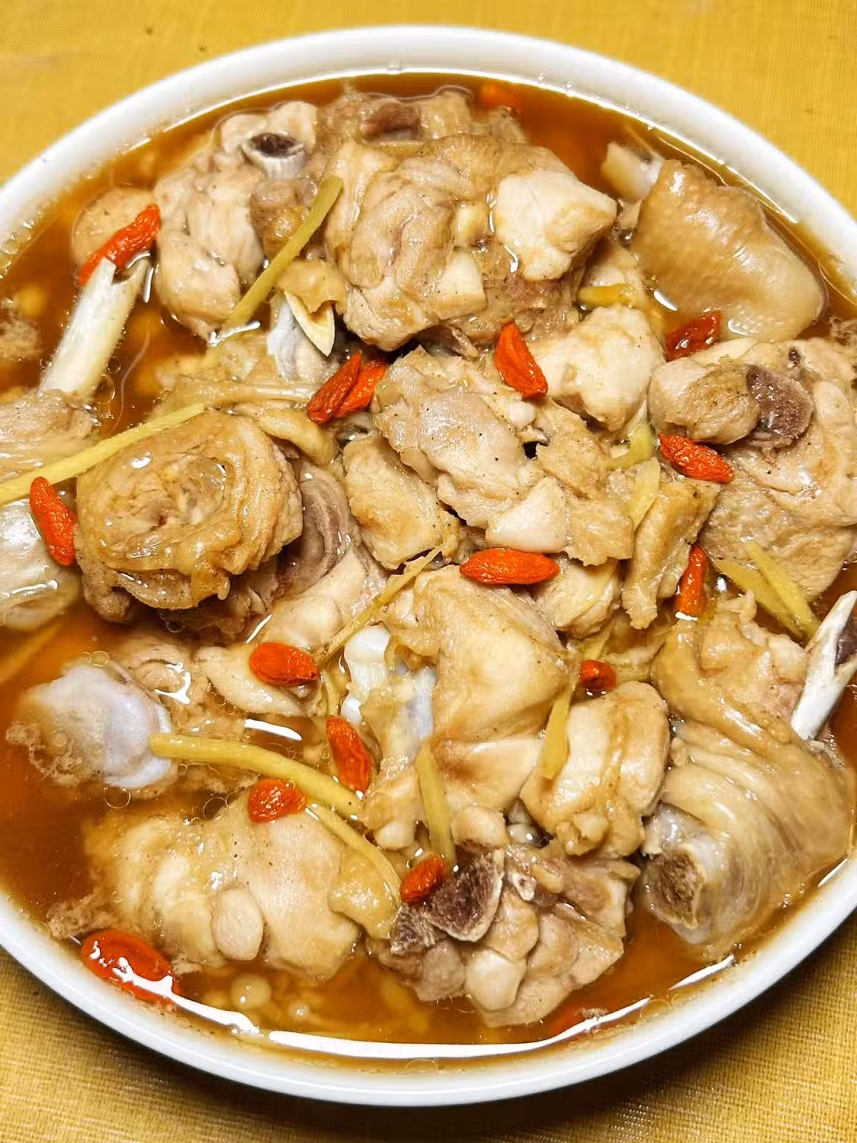 [二R]金針菇鋪底,腌制好的雞肉塊放上面,三鍋蒸20分鐘,撒上枸杞,即可出鍋啦