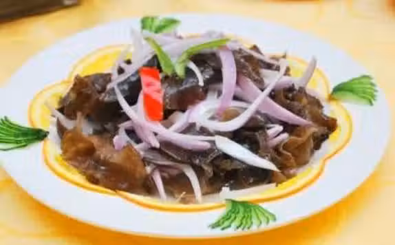 1.木耳泡發切細條,用開水焯燙後備用。