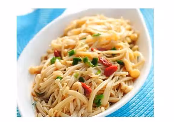 4.將黃瓜絲和金針菇加入適量食鹽、白醋、香油、雞精拌勻。