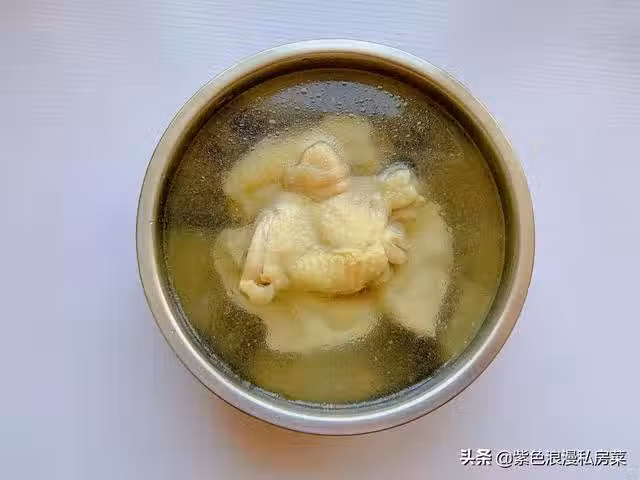 6.椒麻雞好吃的秘訣之二:椒麻雞煮好後,放入提前準備好的冰水中,高溫的雞肉遇到冰水,雞肉會快速收縮,從而鎖住水分,而且肉質還特別細嫩有彈性。