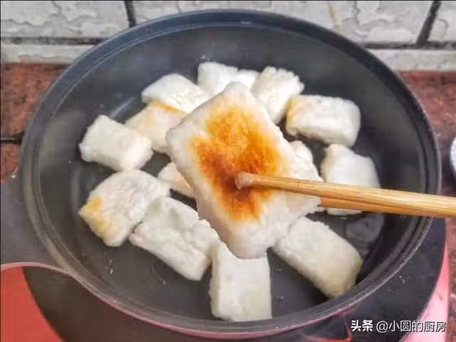 5、等到紅糖完全化開,而且顏色變深,加入糍粑