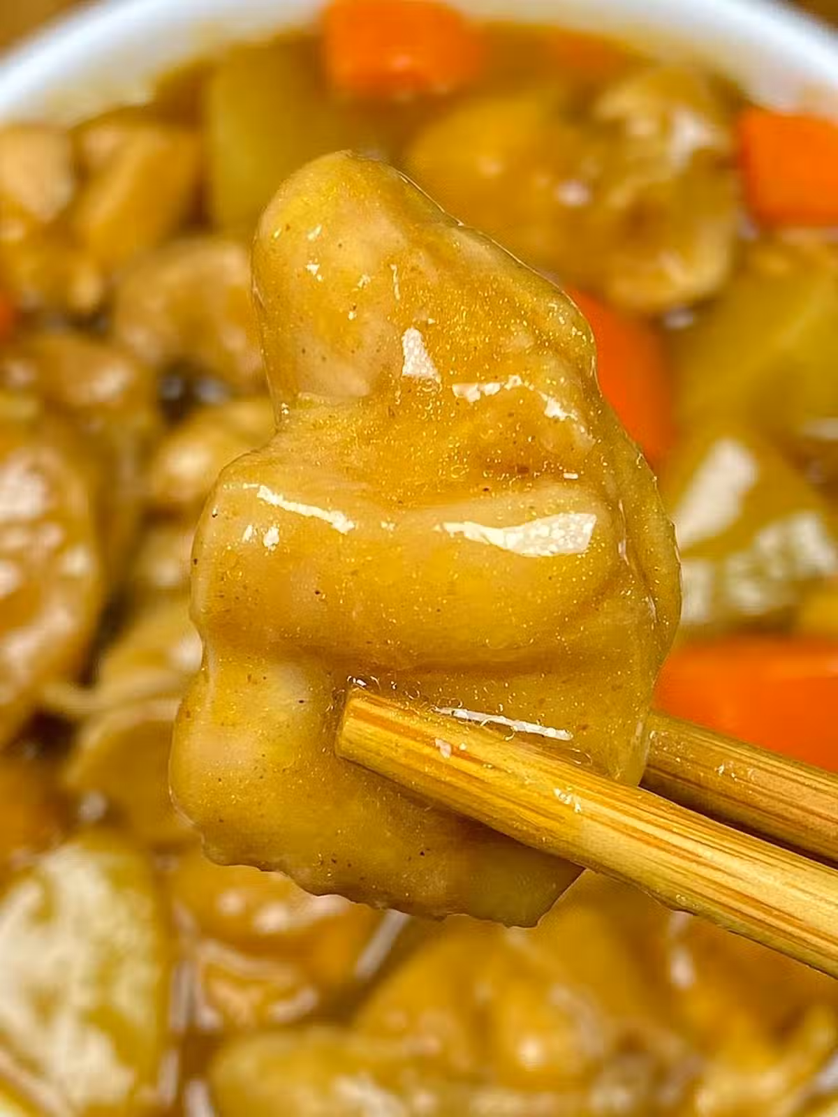 4⃣️倒入一碗清水加入一塊咖喱,煮開後把雞肉倒進去,慢慢煮至濃稠就可以出鍋啦