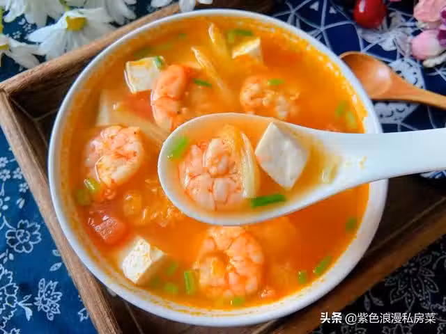 嫩豆腐一塊,蝦仁10隻,娃娃菜半顆,番茄兩個,薑絲適量。