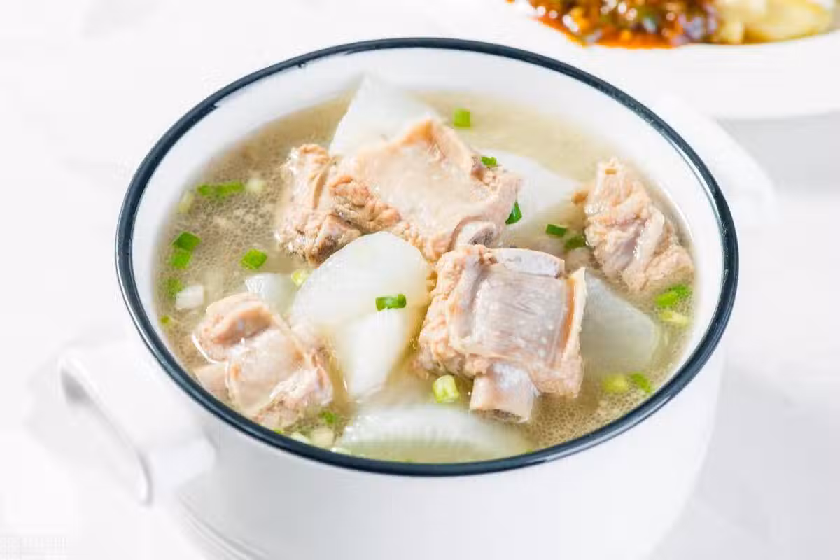另起一鍋,燒開水後放入排骨,再將白蘿蔔去皮切塊一併放入鍋中。燒開水後轉小火燉煮1個小時。