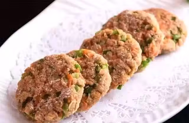 4. 平底鍋燒熱下油,放入燕麥餅,慢火煎至兩面金黃即可出鍋擺盤。