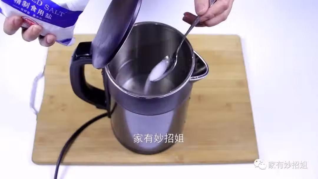 將雞蛋清洗好先放在一邊備用,然後在燒水壺裡面倒入3/4的清水。接著往水壺里加入一勺食鹽,食鹽可以增加些底味,而且還能防止雞蛋破殼、粘殼。