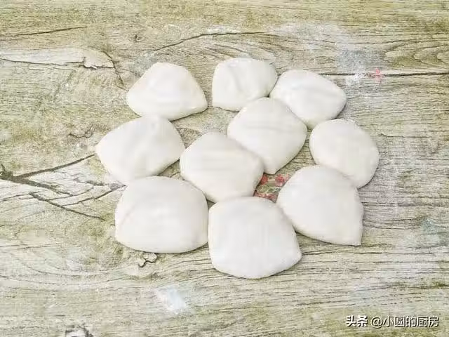 步驟六:取一塊麵糰,用擀麵杖擀成周邊薄,中間厚的面片,放上調好的餡料,用勺子把餡料抹平一點,做的時候更好操作