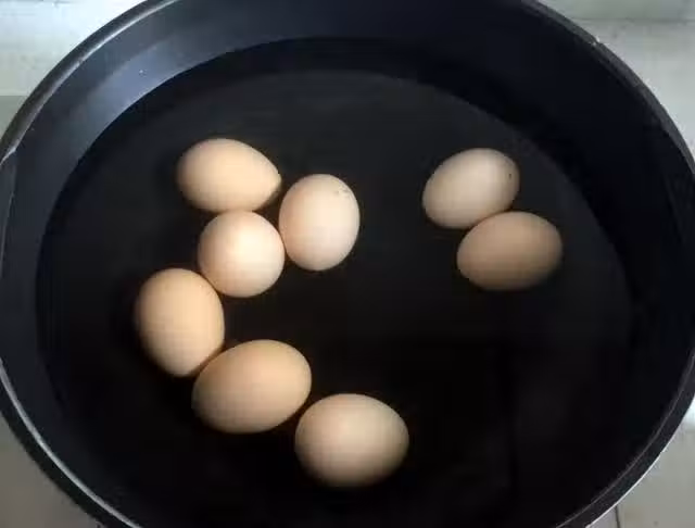 第二步,加上冷水,要讓雞蛋完全沒入水中,同時需要在水中加上一小勺食鹽,再加上一小勺醋,白醋或者是米醋都行,將鍋置於火上;