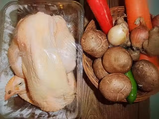 2.雞肉清洗乾淨,剁成小塊,放入少許沙姜粉和生抽;