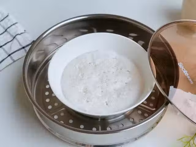 第七步:蒸米糕要冷水上鍋蒸,中小火蒸30分鐘左右,用筷子插入,如果筷子不粘,就說明已經熟透了,再燜5分鐘左右就可以。