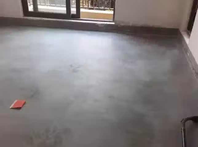 這是打磨後清理乾淨之後的地面,看著特別像農村的水泥地坪地面。 小時候掃地時都需要在上面先灑上水,否則很容易塵土滿天飛。