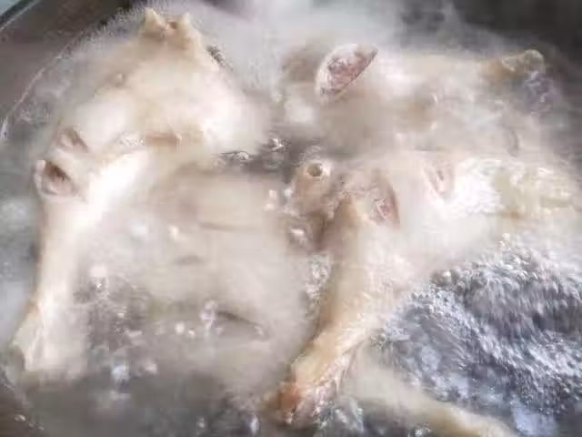 第六步:把鴨腿放入鍋中,然後煎一下,鴨腿兩面金黃就可以了。