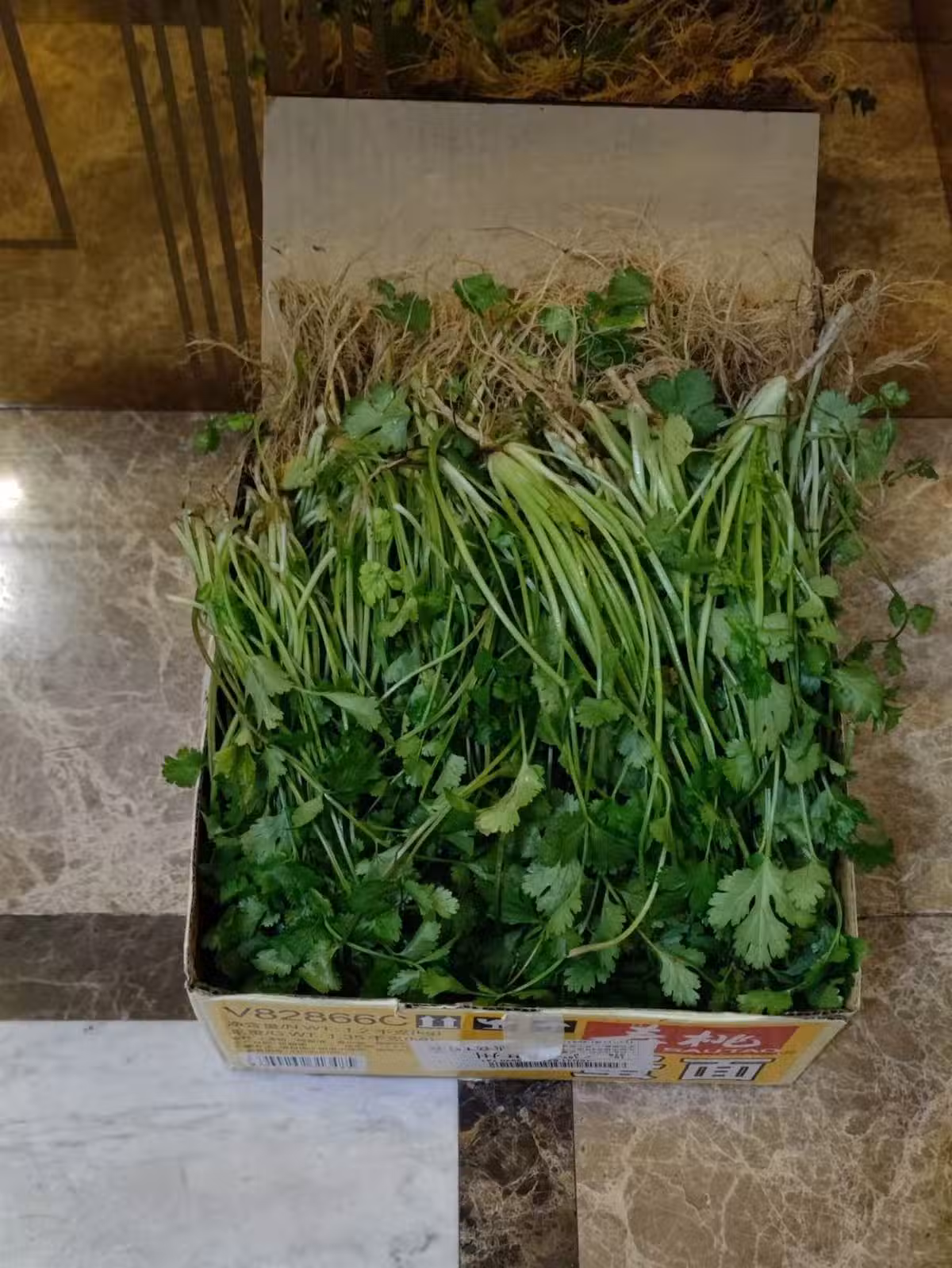 老家自己種的!大方鄰居「電梯裡放新鮮香菜」和大家分享 網大讚是天使「他一看卻搖頭了」