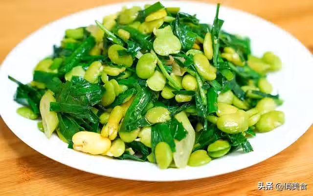 韭菜炒蠶豆搭配在一起,口味咸香,這道菜開胃消食,通利腸胃,還有殺菌的功效。
