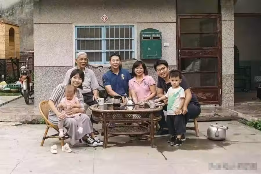 我家的成員有我爺爺、爸爸媽媽、我和太太,一個兒子、一個女兒,一共四代7口人。