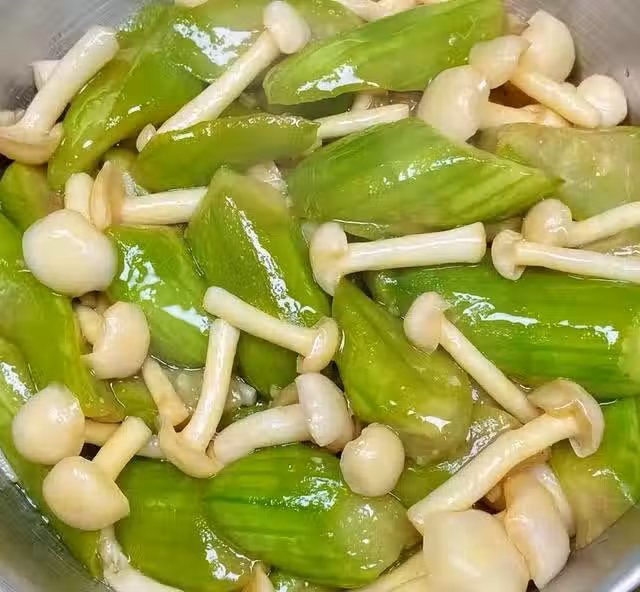 食材準備:絲瓜、白玉菇、大蒜、生抽、食鹽、白鬍椒